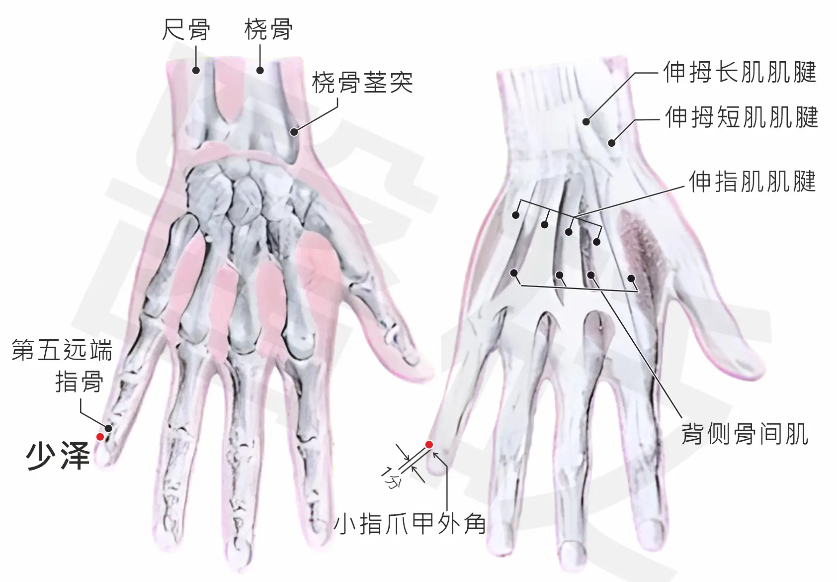 少泽穴位 (改编自《经络与穴道》)