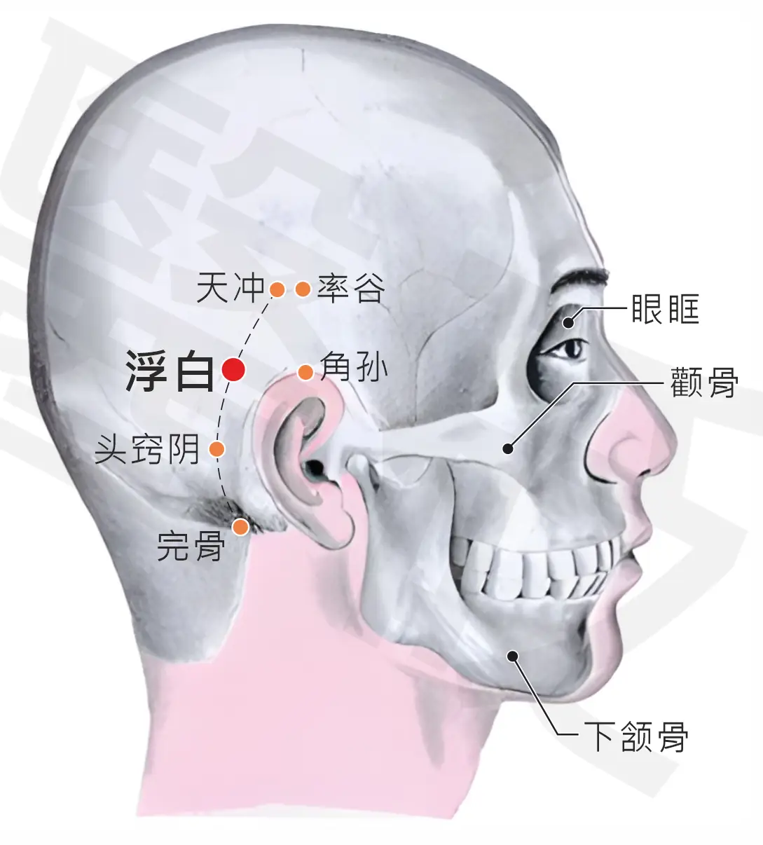 浮,指上部;白,指明亮,穴居处骨面高突显现,故名。