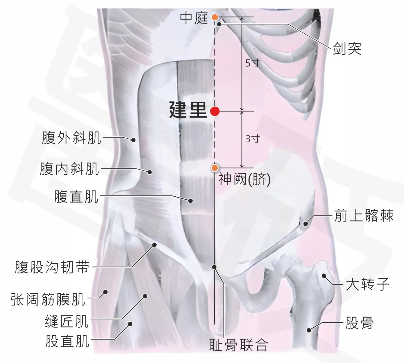 bubble_chart 释名 建,营建;里,聚居处,指穴位。意为建中(脾胃)之处,穴近胃腑有调理胃气作用。