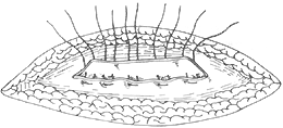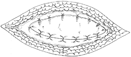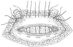 (1)將橫形切開的腹直肌鞘上、下兩葉潛行遊離後縫合