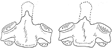 賈連順教授在近年研究中發現另一種類型的發育障礙,即齒狀突短而粗,形如一個完整的齒狀突,較正常則明顯短小,基底較寬,可稱之為「短齒型畸形」(圖5)。