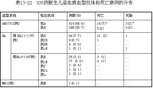 目前已發現人類有26個血型系統、400多個血型。每個血型系統在遺傳上都是獨立的,并按孟德爾法則遺傳。引起新生兒溶血病以的ABO系統為最多,次為Rh系統,其它如MN、Kell、Duffy系統等血型不合引起的本病較少見。在上海前18年所見的835例中ABO不合的占85.3%,Rh不合占15.6%,MN不合占0.1%。各種抗體和發生死胎及新生兒死亡的分佈見表1。