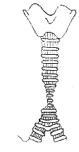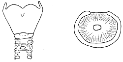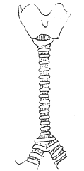 氣管蹼:氣管腔內呈現薄層結締組織隔膜,隔膜中央部分有小孔,供氣體通過。氣管蹼常位於環狀軟骨下方。氣管X線斷層攝片及內窺鏡檢查明確診斷後,可經氣管鏡切除隔膜。隔膜長而厚者先在氣管蹼下方施行氣管切開,插入導管,待長大後再切除氣管蹼(圖1)。