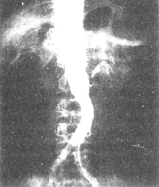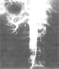(二)排泄性尿路造影(即靜脈尿路造影,IVU) 近30餘年來,由於對腎血管疾病認識的提高及對其引起的腎血流動力學改變的進一步瞭解,對IVU所能提供的要求亦隨之增高。在腎功能方面要能反映腎血流量、腎小球濾過率、腎小管再吸收和分泌等有關變化,藉以作為篩選腎血管疾病的進一步檢查和處理的依據。在60~70年代,許多學者均推荐用分鐘間隔連續靜脈腎盂造影(minute sequence intravenousp yelography)。此法可顯示四項主要變化:①兩腎大小的差異;②兩腎腎盂顯影時間的差異;③兩腎腎盂顯影劑濃度的差異和④輸尿管切跡。此外,尚有其他變化有助於腎動脈梗阻的診斷,如腎寬度和腎盞長度的縮小、腎實質萎縮以及腎盂腎盞變小等。Maxwell(1967)綜合統計8篇500余例腎動脈狹窄檢查的結果,認為此法診斷腎血管性高血壓的陽性率可達90%。MacgRgor(1975)指出此法的假陽性率為15%,假陰性率為17~27%。Dean(1984)在總結近10餘年來眾多文獻資料時,雖同意此法陽性率不高,但可以顯示兩腎形態和功能,藉以摒除其他腎病的存在,且其操作簡便,對病人無何創傷,仍不失為初步篩選本病的方法之一。