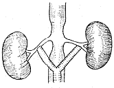 3.脾、腎動脈吻合術 適用於左腎動脈狹窄性纖維肌肉增生病變,要求脾動脈有足夠的大小,可從術前主動脈造影看出(近年來,有多篇報導提出以肝、腎動脈吻合術治療右側腎動脈狹窄,獲得良好效果)。