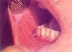 而常見的粘膜炎(mucositis)是紅色良性粘膜炎的統稱,創傷、感染、藥疹等多種原因都可在口腔任何部位引起炎症反應,這種炎症反應通常也稱紅斑。紅斑呈暗紅色,無特異的血紅色,疼痛比較明顯,病程短暫。對於疑似赤斑的局限性損害,可在損害下注射皮質類固醇如確炎舒松,每週2次,如2周內無消退跡象,應予以活體檢查。