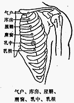 - 《壽世保元》:「在正直乳下容一指許,骨間陷中。婦人則屈乳頭度之,乳頭齊處是穴。」