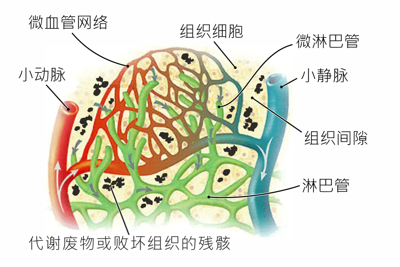 修房屋、傢俱須要材料,修身體亦同,患處也須要像胺基酸、糖、礦物質等等材料,它還須要排出廢棄物的管道,原料不足或廢物排出困難,修繕就會受阻(見圖3)。